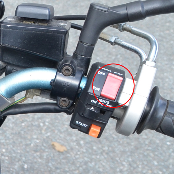 バイクの場合 エンジンストップスイッチがあります 転倒した時に緊急でエンジンを止めるためのスイッチです
